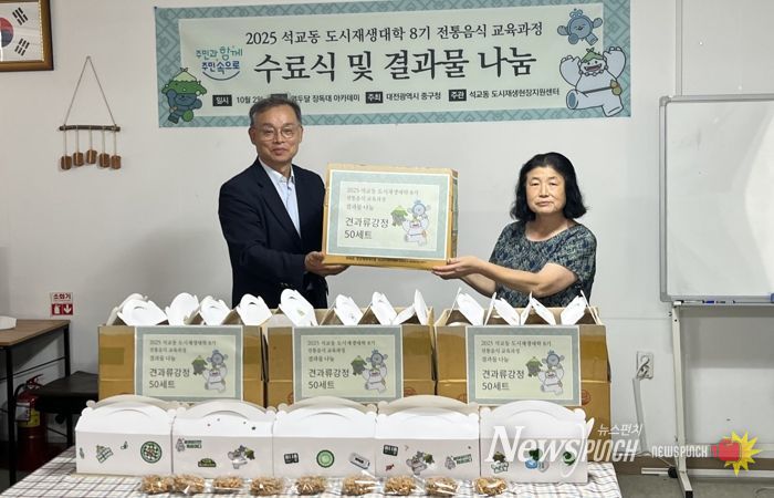 특히 지난 9월 2일부터 5주간 진행된 마지막 8기 과정에서는 참여자들이 두부, 수제청, 전통차, 디저트 등 다양한 요리를 배우며 공동체의 의미를 되새겼다. 참여자들은 직접 만든 견과류 강정 50세트를 늘푸른지역아동센터에 전달하며 따뜻한 나눔을 실천했다. 수료식에서 강정을 받은 아이들은 “맛있고 고마운 선물”이라며 기쁨을 표했으며, 지역사회에 훈훈한 온기를 더했다.