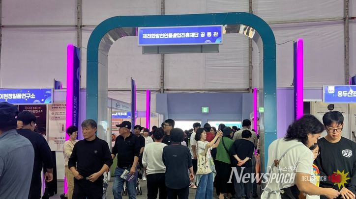 뉴스펀치 김길룡 기자 | 지난 7일 추석 연휴를 맞아 2025 제천국제한방천연물산업엑스포 산업관이 나들이객들로 북적인다.