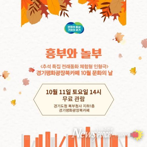 뉴스펀치 탁상훈 기자 | 경기도가 오는 10월 11일 경기평화광장 북카페 원형무대에서 추석 연휴를 맞아 전래동화 인형극 공연 ‘흥부와 놀부’를 공연한다. 이번 행사는 ‘10월 문화의 날’ 프로그램으로, 도민에게 명절의 의미를 되새기고 가족과 함께하는 특별한 시간을 제공하기 위해 기획됐다.