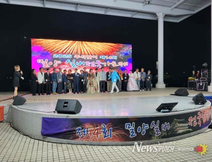 뉴스펀치 김길룡 기자 | 경남 밀양시는 삼문동 야외공연장에서 출연진, 시민 등 300여 명이 참석한 가운데 제14회 밀양실버전국가요제가 성황리에 개최했다고 10일 밝혔다.