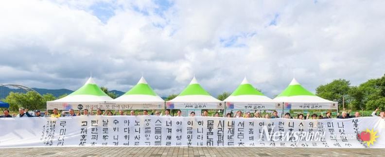 이날 행사에는 지역 서예인과 군민, 관광객 등 100여 명이 참여해 한글의 창제 의미를 함께 나누었다.