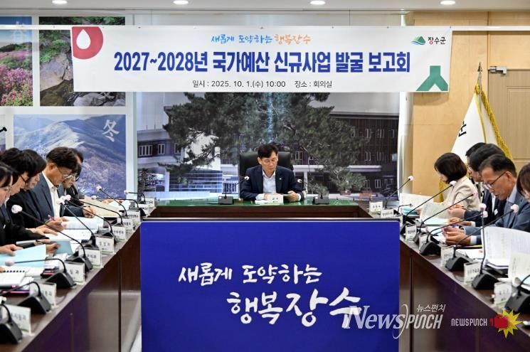 뉴스펀치 정홍균 기자 | 장수군은 군청 회의실에서 ‘2027~2028년 국가예산 신규사업 발굴 보고회’를 열고 미래 성장동력 확보를 위한 핵심 사업 발굴 성과를 공유했다고 10일 밝혔다.