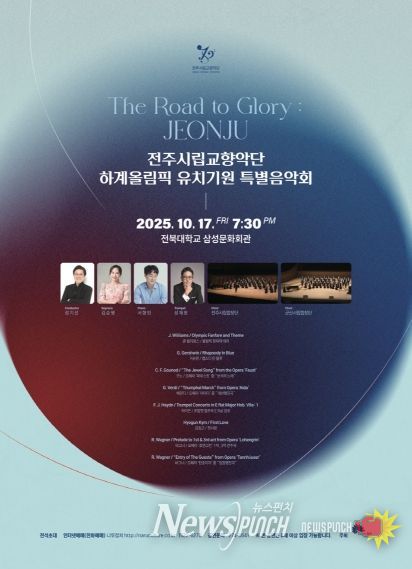 전주시립교향악단은 오는 17일 오후 7시 30분, 전북대학교 삼성문화회관에서 시민과 지역사회가 함께 올림픽 유치의 뜻을 나누는 특별음악회 ‘The Road to Glory: Jeonju’를 개최한다.