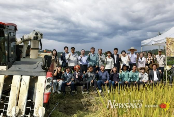 뉴스펀치 탁상훈 기자 | 연천군은 10월 2일 연천군농업인단체협회가 주관하여 청산면 장탄리에서 벼베기 행사를 개최했다.
