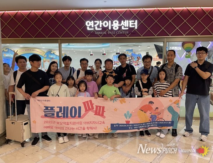 뉴스펀치 탁상훈 기자 | 인천 계양구가족센터는 지난 6월 28일부터 9월 27일까지 유아, 아동, 초등학생 자녀를 둔 13가정(52명)을 대상으로 아버지자녀교육 프로그램 ‘플레이파파’를 진행했다.