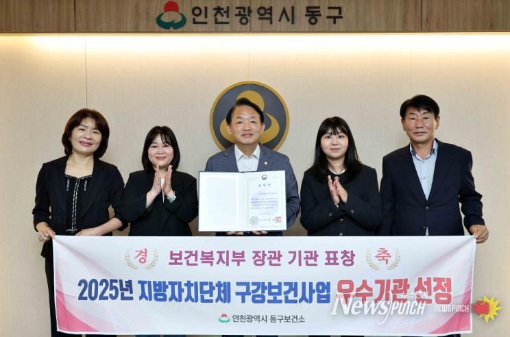 뉴스펀치 탁상훈 기자 | 인천 동구는 지난달 26일 서울시 용산구 피스앤파크컨벤션서 열린 ‘2025년 지방자치단체 구강보건사업 성과대회’에서 보건복지부 장관상을 수상했다고 밝혔다.
