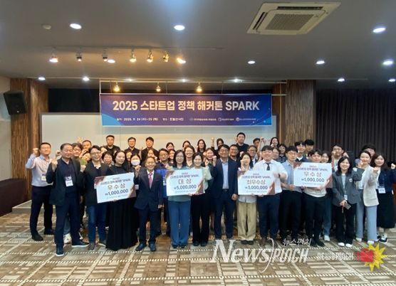뉴스펀치 김길룡 기자 | 김해의생명·산업진흥원은 지난 9월 24일부터 25일까지 대전 호텔선샤인에서 열린 '2025 스타트업 정책 해커톤 SPARK'에서 김해·창원·경남 1인창조기업지원센터가 원팀으로 공동 참가하여대상을 수상했다고 밝혔다.