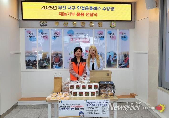 뉴스펀치 김길룡 기자 | 부산광역시 서구는 지난 2일 추석을 맞아 ‘한걸음클래스 배움 한 걸음, 나눔 두 걸음’ 사업에 참여한 소상공업체와 수강생들이 직접 만든 물품을 부산연탄은행에 전달했다고 밝혔다.