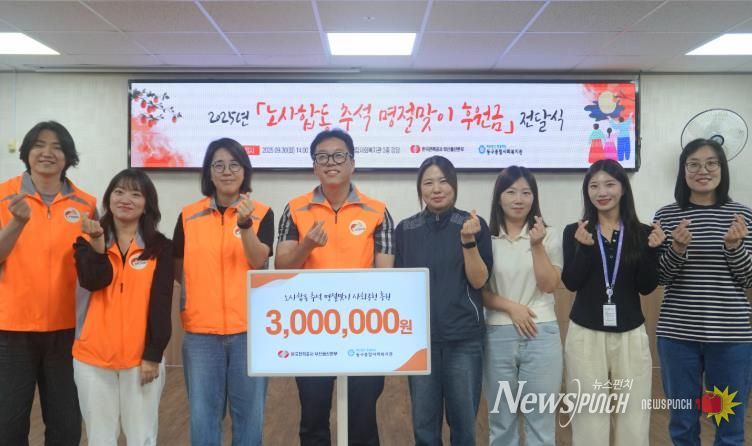 뉴스펀치 김길룡 기자 | 부산 동구종합사회복지관은 지난 9월 30일, 추석 명절을 앞두고 한국전력공사 부산울산본부로부터 노사 합동으로 마련한 300만 원의 후원금을 전달받았다고 밝혔다.
