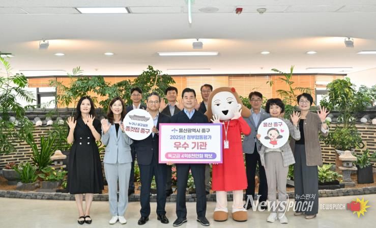 뉴스펀치 김길룡 기자 | 울산 중구가 울산시 주관 ‘2025년(2024년 실적) 정부합동평가 구·군 평가’에서 종합 2위를 달성해 우수기관으로 선정됐다.