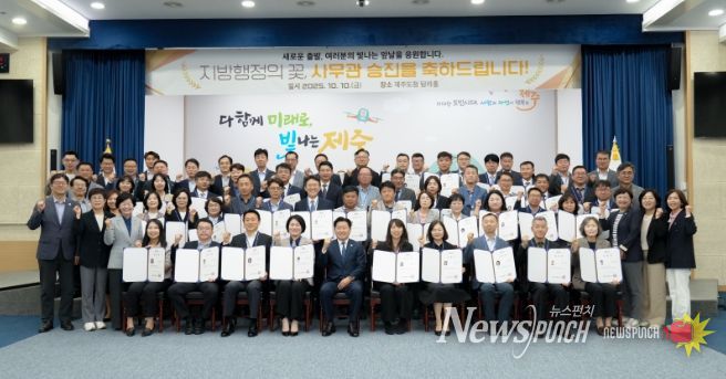 뉴스펀치 김길룡 기자 | 제주특별자치도는 10일 오전 도청 탐라홀에서 사무관 및 연구·지도관 승진자 50명에게 임용장을 수여했다.