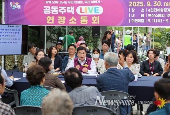 뉴스펀치 김완규 기자 | 서울 동대문구는 지난 30일 e편한세상 청계센트럴포레 아파트에서 ‘2025 공동주택 LIVE 현장소통회’를 개최했다. 지난 6월 래미안미드카운티에서 열린 첫 소통회에 이어 두 번째로 마련된 이번 행사는 구청장이 직접 현장을 찾아 입주민과 소통하며 공동주택 현안을 논의하는 자리로 진행됐다.