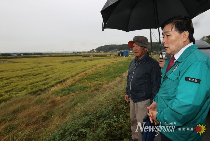 뉴스펀치 탁상훈 기자 | 옹진군수는 지난 6일에 내린 집중호우와 강풍으로 인해 벼 도복 피해를 입은 북도·영흥면을 방문하여 피해 상황을 점검했다.
