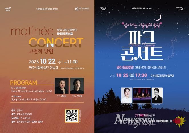 양주시가 깊어가는 가을 정취 속에서 시민들에게 품격 있는 문화예술 향유 기회를 제공하기 위해 오는 22일 ‘마티네 콘서트’와 25일 ‘파크콘서트’를 연이어 개최한다.