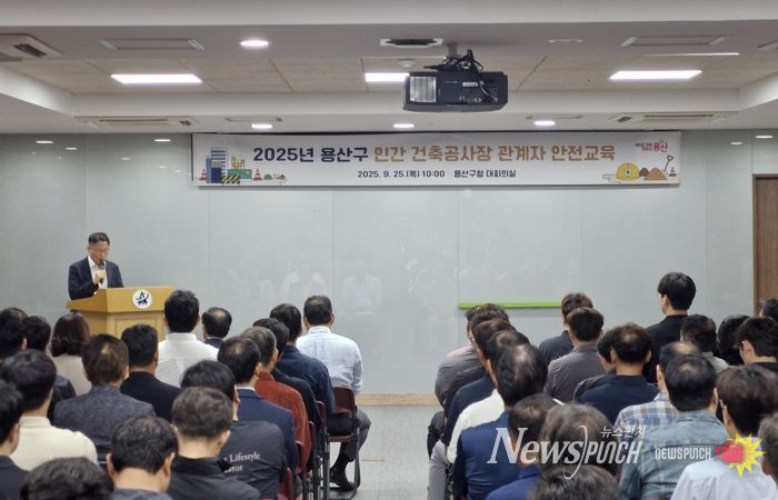 뉴스펀치 김완규 기자 | 서울 용산구가 지난 9월 25일 관내 건축공사장 관계자 80여 명을 대상으로 안전관리 역량 강화 교육을 실시했다고 밝혔다.