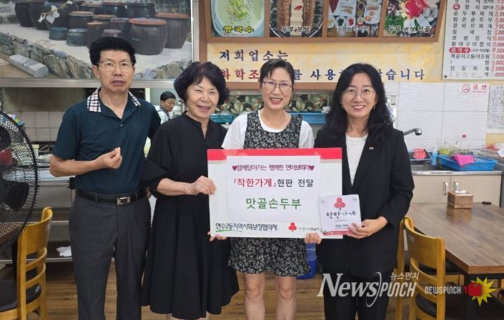 뉴스펀치 탁상훈 기자 | 연수구 연수2동 지역사회보장협의체는 지난달 29일 관내 장기요양기관 ‘엔젤복지용구’와 식당 ‘맛골 손두부’에 나눔 인증 ‘착한가게’ 현판을 전달하고 지역사회 나눔 실천에 감사의 뜻을 표했다.