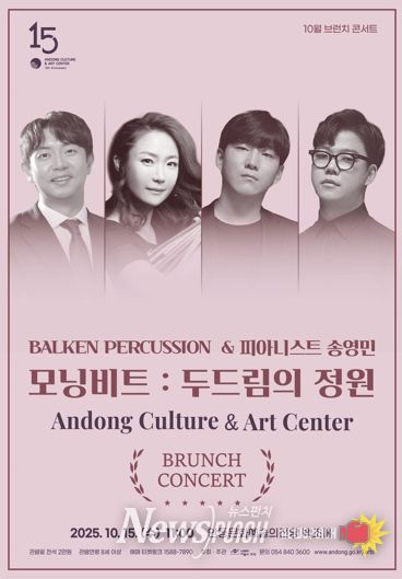 뉴스펀치 김길룡 기자 | 안동문화예술의전당은 매월 둘째 주 수요일, 클래식 애호가들을 위한 감성 콘서트 시리즈인 ‘브런치 콘서트’를 꾸준히 선보이며 지역 문화 활성화에 앞장서고 있다. 10월의 브런치 콘서트, '모닝비트: 두드림'이 오는 10월 15일 오전 11시, 안동문화예술의전당 백조홀에서 열린다.