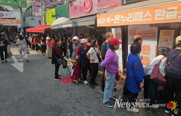 뉴스펀치 김길룡 기자 | 구미시는 전통시장 활성화와 지역경제 회복을 위해 추진 중인 '2025 K-온누리패스(온누리상품권 환급)' 행사가 시민들의 큰 호응 속에 활기를 띠고 있다고 밝혔다. 이번 행사는 9월 25일부터 11월 9일까지 구미새마을중앙시장, 문화로ㆍ중앙로 동문상점가 등 지정 점포에서 운영된다.
