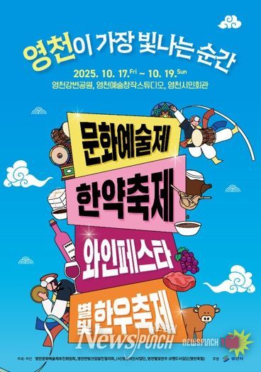 올해는 오는 17일부터 19일까지 3일간 강변공원에서 ▲제23회 한약축제 ▲제51회 문화예술제 ▲제13회 와인페스타 with 별빛한우 명품구이축제 등 영천시 주요 축제를 공동 개최한다. 영천예술상 시상식과 추억사랑희망 콘서트 등 공연은 시민회관에서, 수석전·민화전 등 전시회는 예술창작스튜디오에서 열린다.
