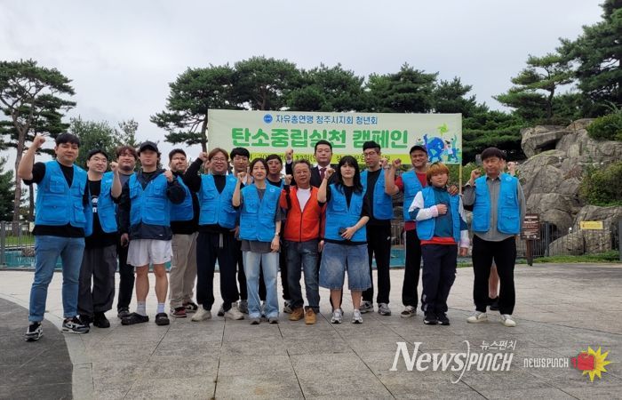 뉴스펀치 김길룡 기자 | 한국자유총연맹 청주시지회는 12일 오전 흥덕구 문암생태공원에서 시민들을 대상으로 탄소중립 실천 캠페인을 개최했다.