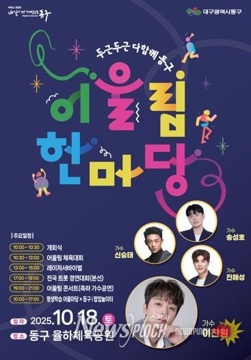 대구 동구청은 오는 18일, 율하체육공원 일원에서 2025년 어울림한마당 ‘두두다동’을 성대하게 개최한다고 밝혔다.