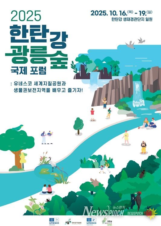 뉴스펀치 탁상훈 기자 | 경기도는 10월 16일부터 19일까지 포천 한탄강 생태경관단지에서 ‘2025 한탄강·광릉숲 국제 포럼’을 개최한다. 이번 포럼은 한탄강 국가지질공원 지정 10주년을 기념해 마련된 행사로, 유네스코 세계지질공원인 한탄강과 생물권보전지역인 광릉숲이 협력해 유네스코 보호지역의 가치를 공유하고 지속가능한 미래를 모색한다.