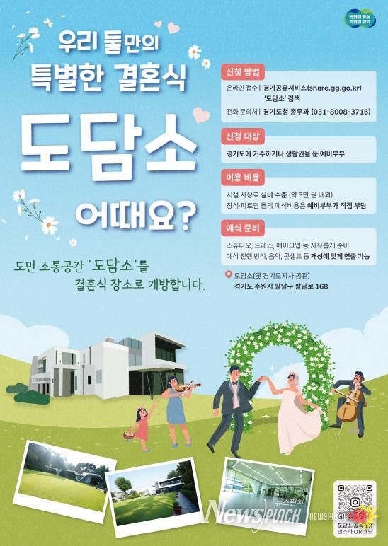 조병래 경기도 자치행정국장은 “많은 도민이 도심 속 정원에서 합리적인 비용으로 특별하고 의미 있는 결혼식을 올리길 바라는 마음으로 도담소 작은결혼식을 기획했다”면서 “형식보다 진심을 담는 결혼 문화의 새로운 변화를 이끌 수 있도록 작은결혼식의 정착을 지원하겠다”고 말했다.
