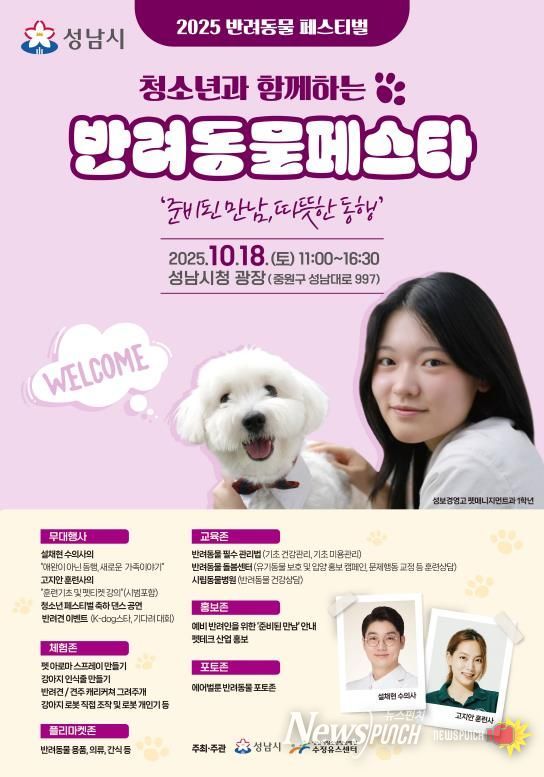 뉴스펀치 탁상훈 기자 | 성남시는 오는 10월 18일 오전 11시~오후 4시 30분 시청 광장에서 ‘2025. 반려동물 페스티벌’을 연다.