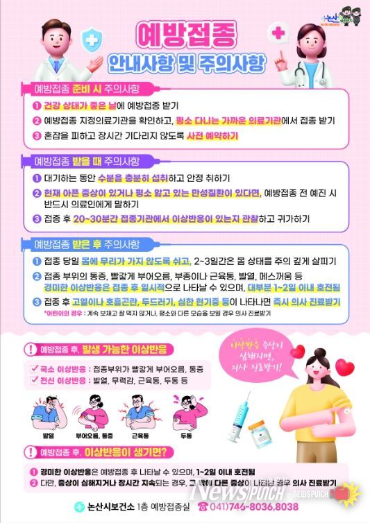 논산시 관계자는 “예방접종은 감염병에서 자유로운 노후를 위한 최선의 수단”이라며 “대상에 해당하시는 분들은 가까운 접종기관을 통해 빠짐없이 무료 접종 혜택을 받으시기 바란다”고 당부했다.