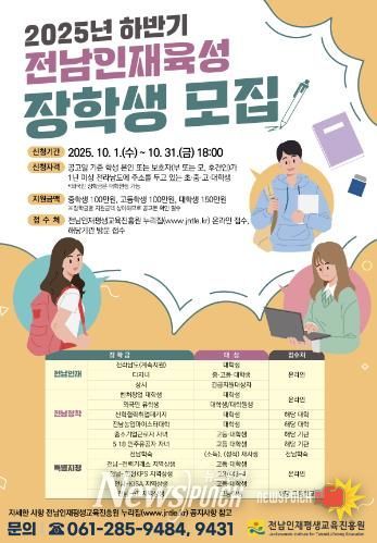 뉴스펀치 김길룡 기자 | 전라남도와 전남인재평생교육진흥원은 실질적인 교육기회 보장과 미래인재로의 성장, 지역 정착을 지원하기 위한 2025년 하반기 전남인재육성 장학생을 오는 31일까지 모집한다.