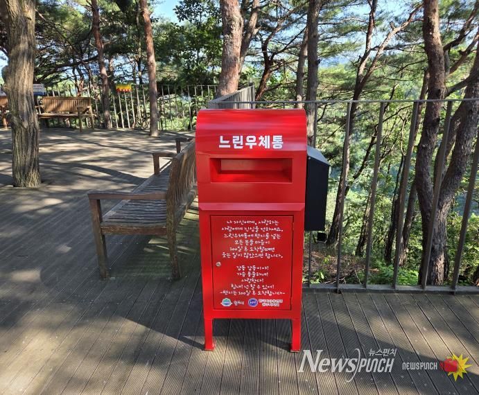 뉴스펀치 김길룡 기자 | 한국자유총연맹 원주시지회는 지난 추석 연휴 기간 치악산둘레길 11코스 한가터길에 ‘느린우체통’을 설치했다. 이는 소금산그랜드밸리와 봉화산둘레길에 이은 세 번째 설치다.