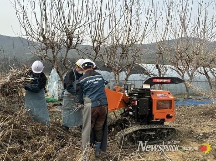 파쇄지원단은 산림 인접 농지와 영농부산물 처리가 어려운 취약계층 농가를 우선 지원하며, 마을을 직접 방문해 과수 잔가지, 고춧대 등의 영농부산물을 수거·파쇄한다.