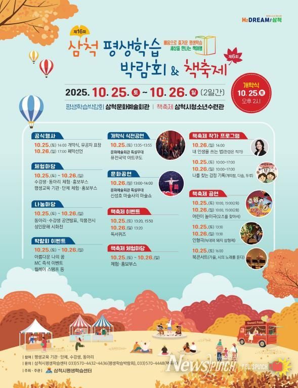 뉴스펀치 김길룡 기자 | 삼척시는 오는 10월 25일부터 26일까지 이틀간 삼척문화예술회관과 삼척시청소년수련관 일원에서 ‘제16회 삼척평생학습박람회 및 제6회 책축제’를 개최한다.