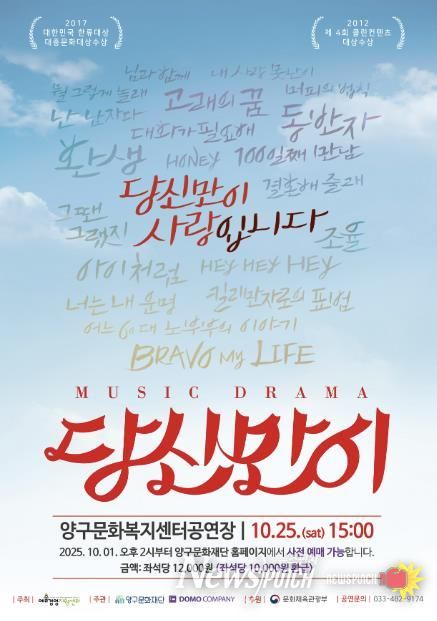 뉴스펀치 김길룡 기자 | 양구문화재단은 깊어가는 가을, 가족 모두가 함께 즐길 수 있는 뮤지컬 ‘당신만이’를 오는 25일 오후 3시, 양구문화복지센터 공연장에서 선보인다.