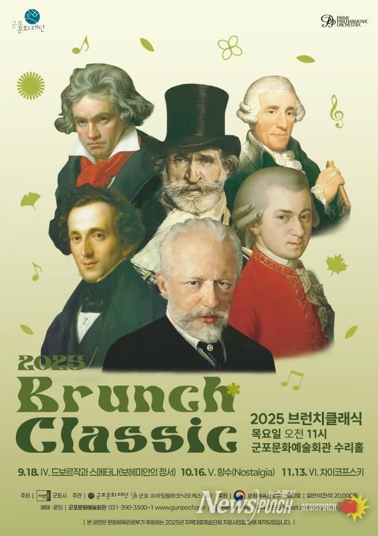 뉴스펀치 탁상훈 기자 | 군포문화재단은 오는 10월 16일 오전 11시, 군포문화예술회관 수리홀에서 ‘2025 브런치클래식’의 다섯 번째 공연을 개최한다.