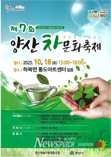 뉴스펀치 김길룡 기자 | 양산시는 오는 10월 18일 오후 1시 20분 하북면 통도아트센터 광장 일원에서 ‘제7회 양산 차문화축제’가 개최된다고 밝혔다.