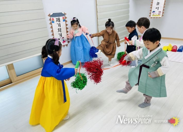 어린이집에서는 추석 명절을 맞이하여 한복을 차려입고 송편 만들기, 전 만들기, 차례 지내기, 전통 민속놀이 체험하기 등 다양한 프로그램을 진행하며 풍성한 음식을 나누고 가족과 함께하는 명절의 의미를 되새기는 시간을 가졌다.
