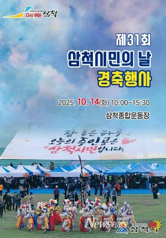 뉴스펀치 김길룡 기자 | 삼척시민의 단결과 화합, 애향심과 자긍심을 고취하기 위한 제31회 삼척시민의 날 기념 경축 행사가 오는 10월 14일 오전 10시 삼척종합운동장에서 열린다.