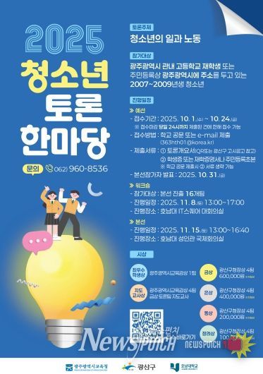 뉴스펀치 김길룡 기자 | 광주 광산구가 청소년들의 다양한 시각에서 생각하고 소통하는 ‘2025 광산 청소년 토론한마당’을 개최한다.
