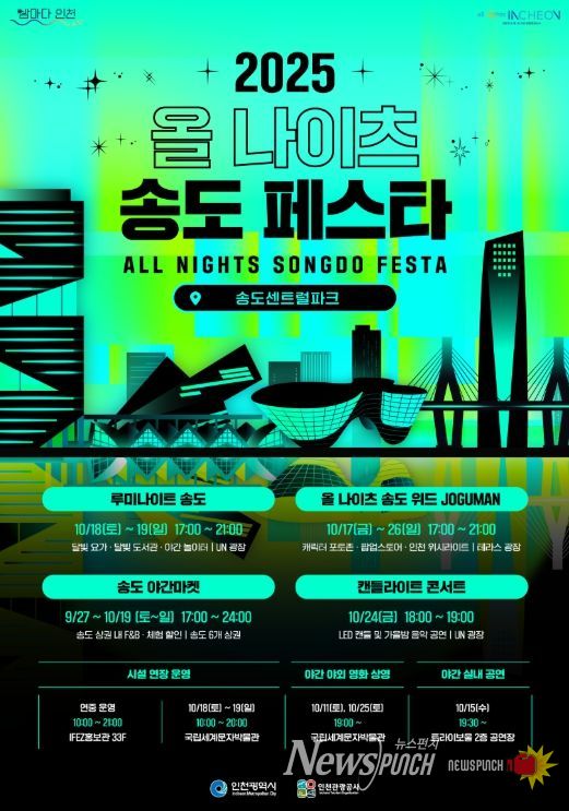 뉴스펀치 탁상훈 기자 | 인천광역시와 인천관광공사는 오는 10월 17일부터 26일까지 송도센트럴파크 일대에서 '2025 올 나이츠 송도 페스타'를 개최한다고 밝혔다.