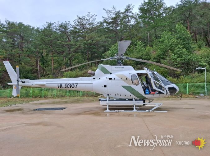 뉴스펀치 김길룡 기자 | 울진군은 연중화·대형화 되어가는 산불에 대응하기 위해 10월 11일부터 북면 구수곡자연휴양림 내 계류장에 진화헬기(AS-350B2, 730L) 1대를 조기 배치했다.