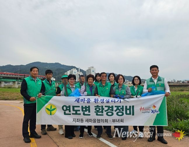 뉴스펀치 김길룡 기자 | 김천시 지좌동 새마을지도자회(협의회장 박주태, 부녀회장 황경숙)는 지난 10월 2일, 민족 최대의 명절 추석을 앞두고 고향을 찾는 귀성객과 지역 주민들에게 쾌적하고 깨끗한 환경을 제공하기 위해 관내 감천변 일대에서 대대적인 환경정화 활동을 펼쳤다.
