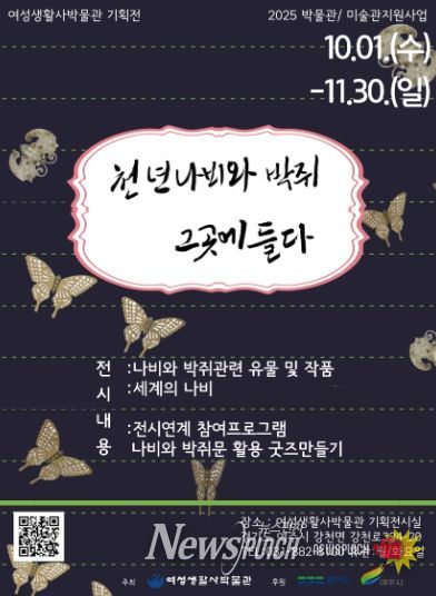 뉴스펀치 탁상훈 기자 | 여주시에서 진행하는 2025년 박물관·미술관 지원사업의 일환으로 여성생활사박물관의 ‘천년 나비와 박쥐 그곳에 들다’ 전시가 10월 1일부터 11월 30일까지 개최된다.