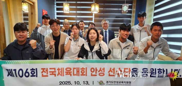 뉴스펀치 탁상훈 기자 | 경기도안성교육지원청은 안성교육지원청 교육장, 교육과장, 안성시 체육회 임원 등이 참석한 가운데 제106회 전국체육대회에 출전하는 안성 관내 고등학교 소프트테니스 학생 선수들의 건강하고 활기찬 경기를 기원하며 대표 선수들을 격려했다.