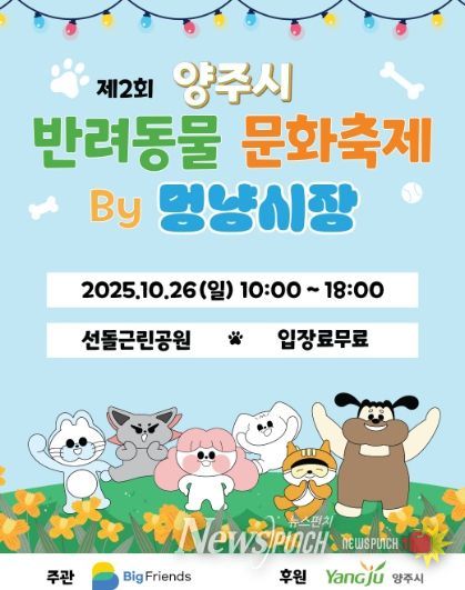 뉴스펀치 탁상훈 기자 | ㈜빅프렌즈가 주관하는 ‘2025년 양주시 반려동물 문화축제’가 오는 26일 옥정동 선돌근린공원에서 열린다.