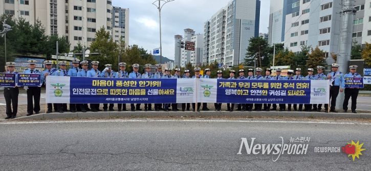 뉴스펀치 탁상훈 기자 | 남양주시는 지난 4일 새마을교통봉사대 남양주시지대가 호평IC 입구에서 추석맞이 교통사고 예방 캠페인을 진행했다고 13일 밝혔다.