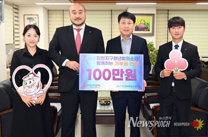 뉴스펀치 탁상훈 기자 | 부평구는 13일 인천부평청년회의소(JCI)로부터 이웃돕기 성금 100만원을 전달받았다.