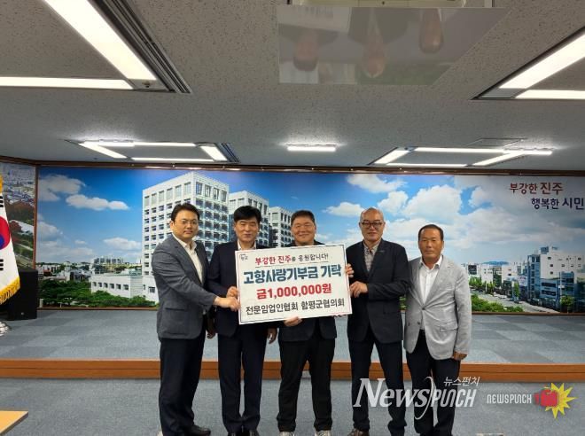 뉴스펀치 김길룡 기자 | 진주시는 13일 함평군 전문임업인협회 회원들로부터 고향사랑기부금 100만 원을 기탁받았다고 전했다.