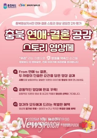 뉴스펀치 김길룡 기자 | 충북도는 오는 10월 16일 오후 7시, 오송 선하마루에서 ‘충북 연애·결혼공감 스토리 영상제’를 개최한다고 밝혔다.