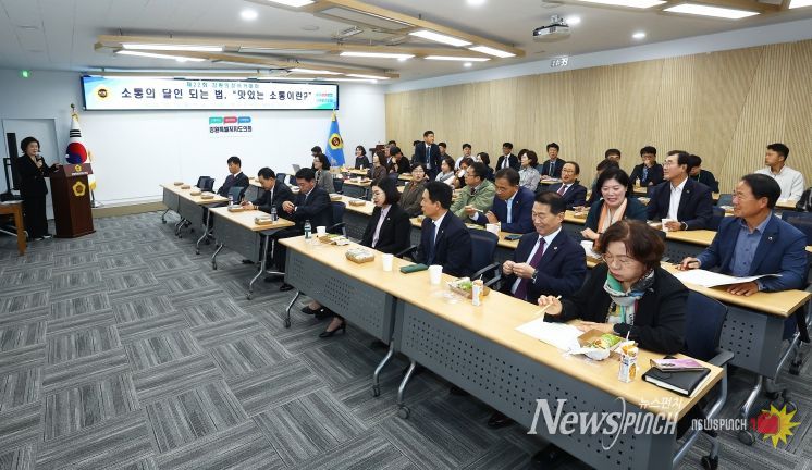 현직 도의원 49명 전원과 강원특별자치도민, 의회사무처 직원을 대상으로 실시하는 이번 교육에서는 백현주 연사(방송인)를 초청해 ‘소통의 달인이 되는 법, 맛있는 소통이란?’을 주제로 강의를 개최했다.